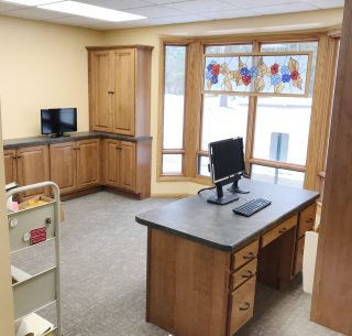 The Friends of the Library had beautiful cabinets installed in the work office. A new desk, too.