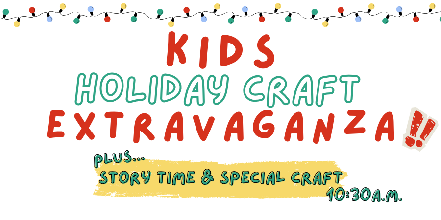 Celebrate the season with our children’s Holiday Craft Extravaganza on Monday, December 29, from 10am-2pm! Children’s library assistant Leah will lead a Story Time at 10:30am, followed by a special craft.