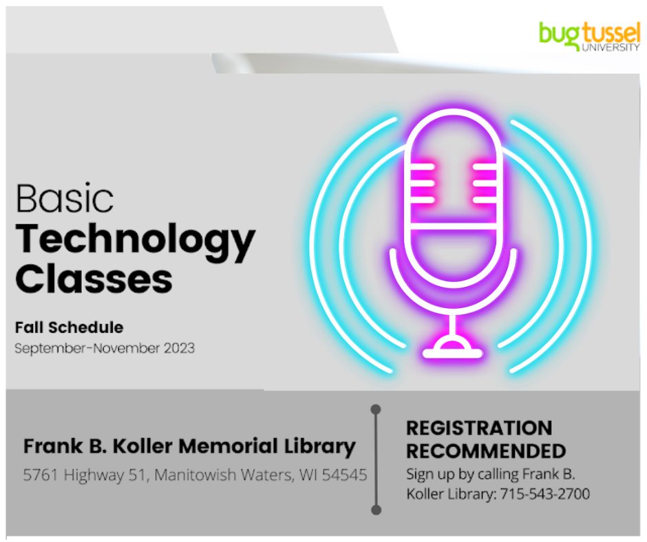 This program will teach you how to USE and listen to podcasts. (This is not a class to learn how to create a podcast.) Moderate tech experience is expected of participants. This class is FREE, but preregistration is extremely helpful. Please call the library to sign up. 715-543-2700.