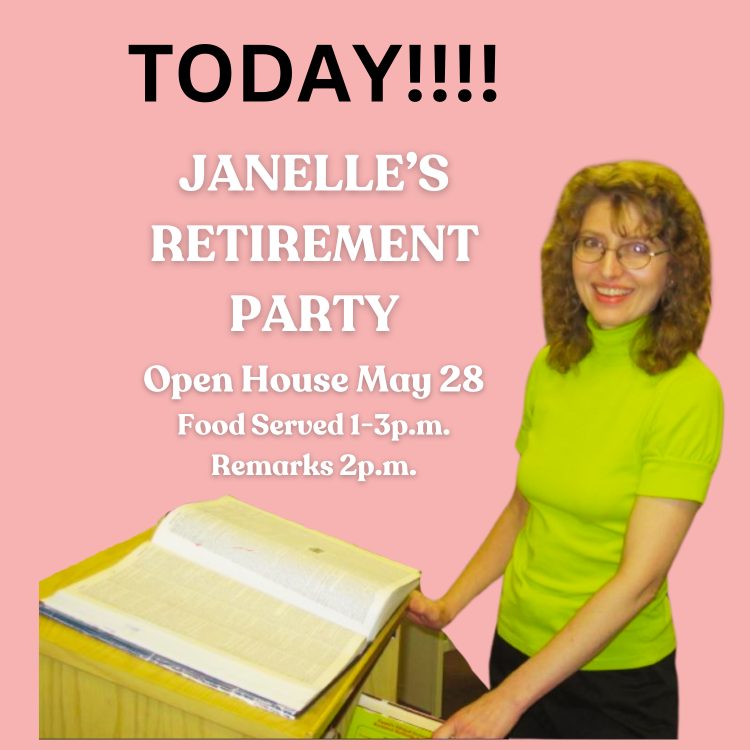Koller Library 5761 HWY 51, Manitowish Waters, WI, United StatesJanelle is retiring after 33 years of library service! (Look at this sweet circa 1990s photo we found of her!) Help us celebrate Janelle, congratulate her on retirement, and honor…